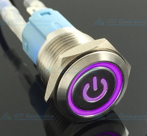 16mm Pressure Switch Self-reset Momentary Illuminated logo ring light Purple