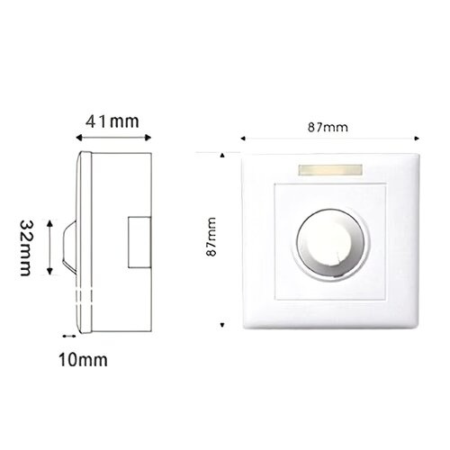 Surface-mounted dimmer for LED lighting such as LED strips or spotlights.