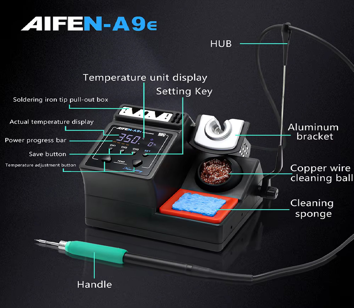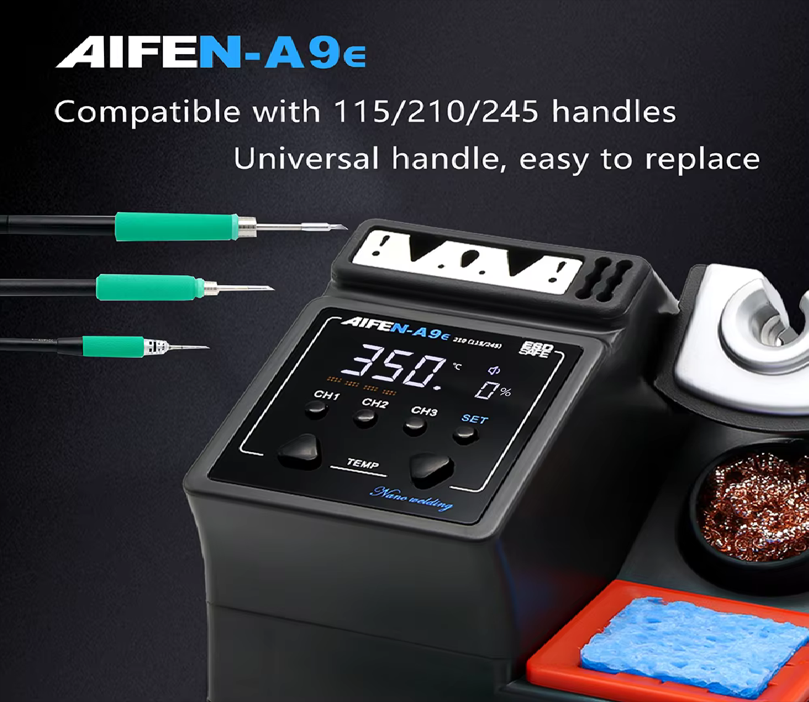 AIFEN-A9e is geschikt voor zowel lood solderen als loodvrij solderen. Voor dit station zijn verschillende soldeerpunten geschikt C210/C245/C115